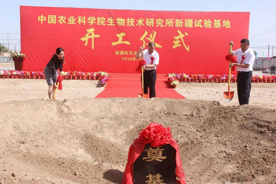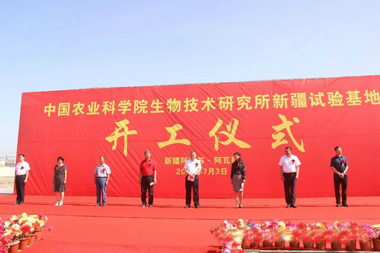 7月3日,生物所新疆试验基地建设项目在新疆阿瓦提县开工奠基。阿瓦提县委副书记艾则孜?买买提,我院基本建设局项目处处长徐欢,合作企业新疆鲁泰丰收棉业有限责任公司党委书记、总经理李景泉,生物所副所长张春义,以及生物所项目管理人员、科研人员、合作企业员工代表、承建方和监理方代表共300余人参加了开工仪式。仪式由生物所党委书记姜梅林主持。