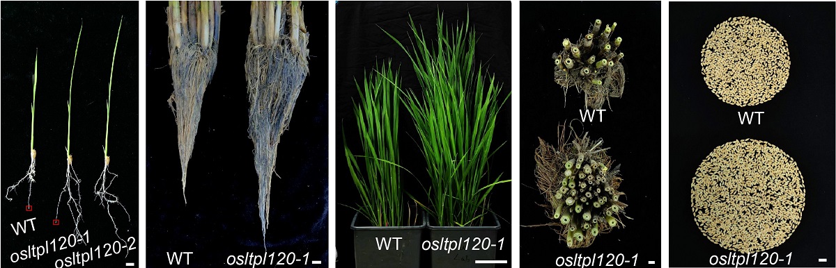 osltpl120编辑功能缺失后表现为根变长变粗、株高变高、分蘖增多、产量增加。中国农科院供图