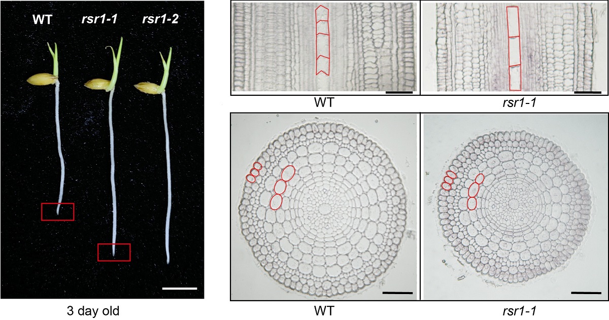rsr1编辑功能缺失后会导致皮层细胞和维管细胞变小、表皮细胞数目减少表型。中国农科院供图