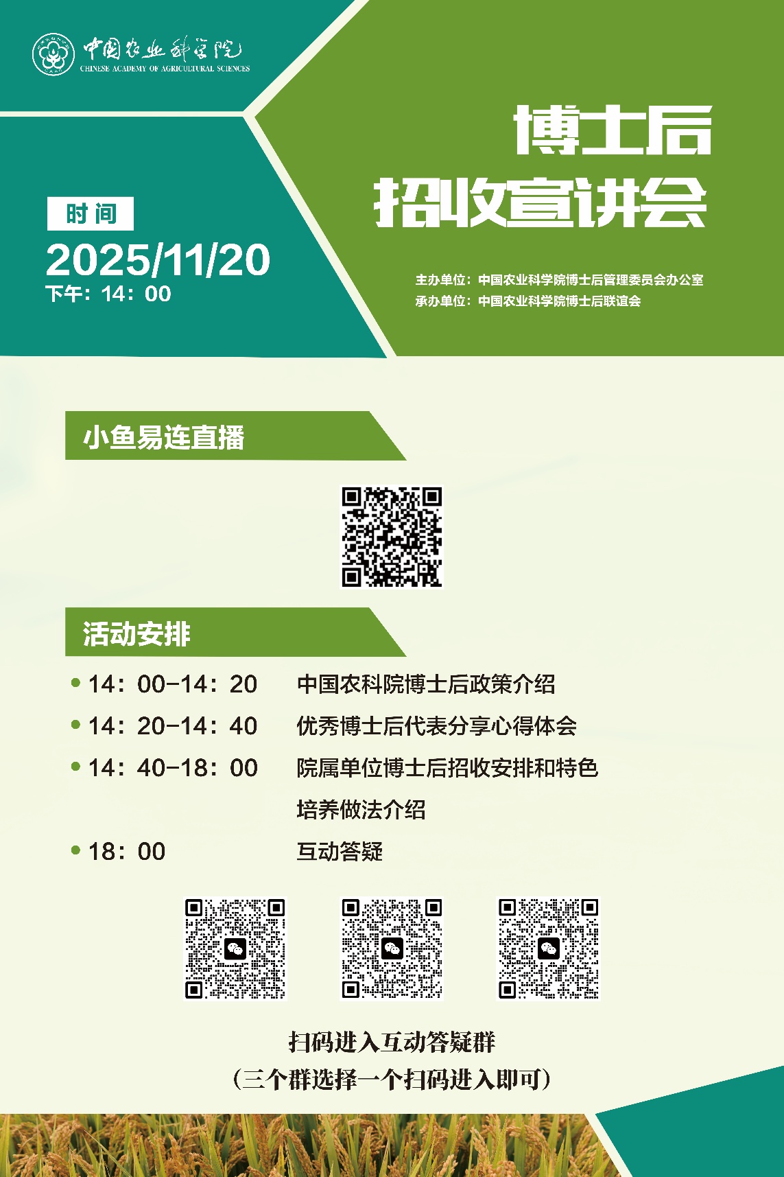 中国农科院2025年博士后招收计划